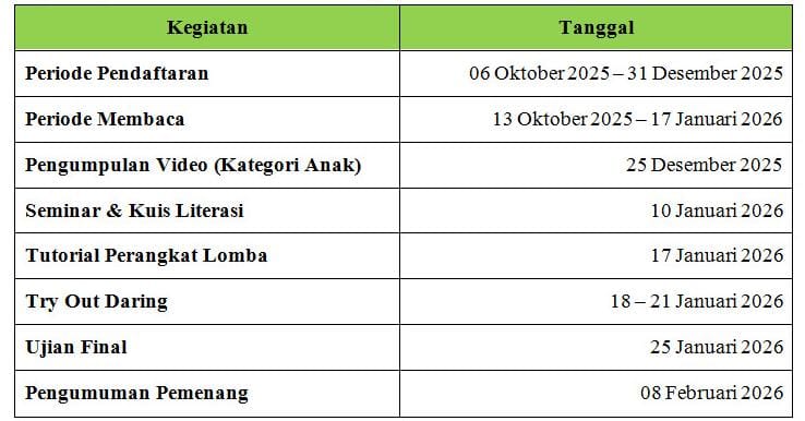Berikut jadwal pelaksanaan Semua Membacanya 2025: