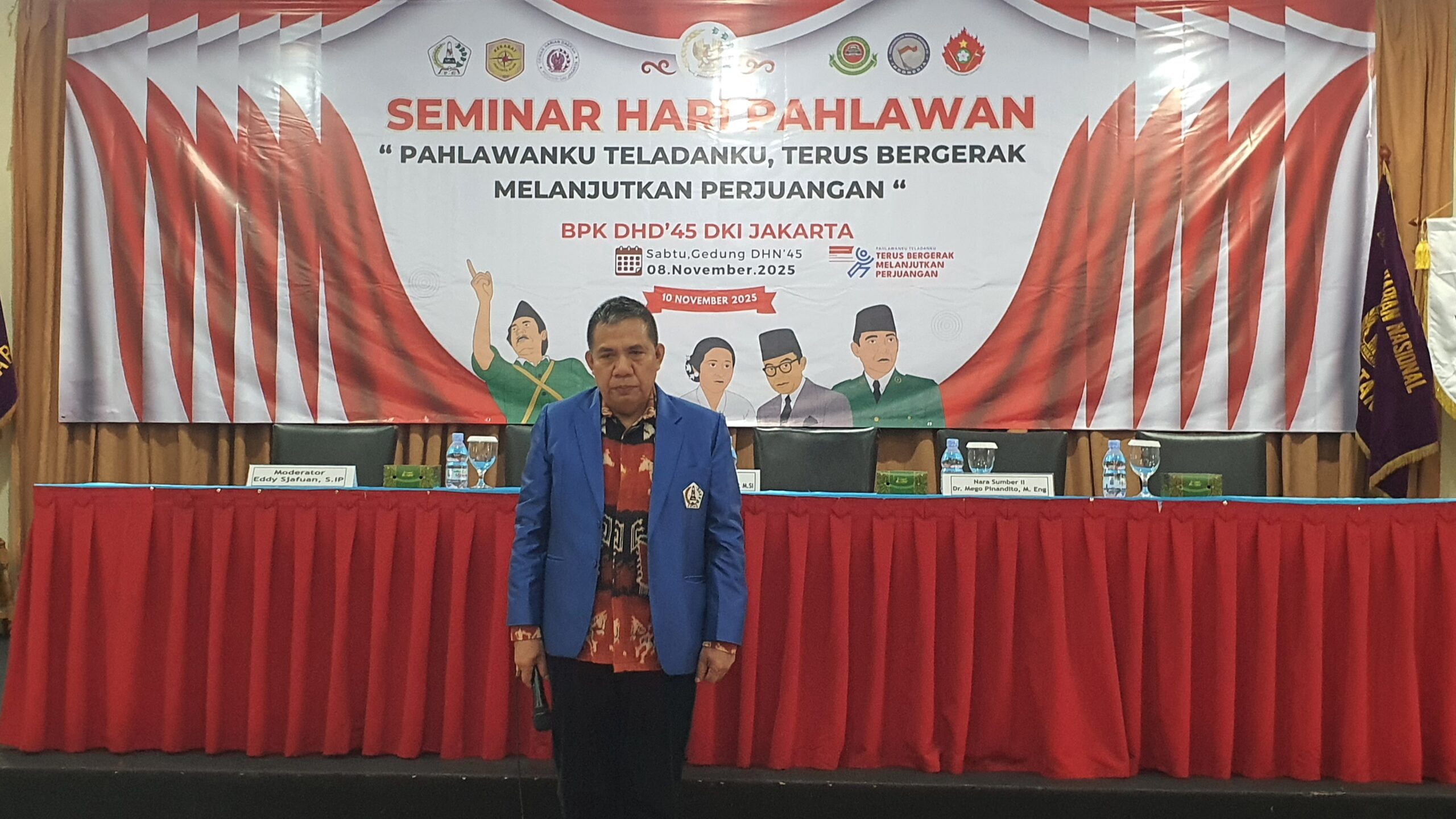 Jakarta — Suasana penuh semangat kebangsaan mewarnai kegiatan Seminar Peringatan Hari Pahlawan yang digelar di Gedung Joang 45 Jakarta, Sabtu, 8 November 2025. Kegiatan ini menjadi bagian dari rangkaian peringatan Hari Pahlawan yang tahun ini diselenggarakan secara kolaboratif oleh berbagai organisasi pejuang dan kebangsaan. (10 November 2025)